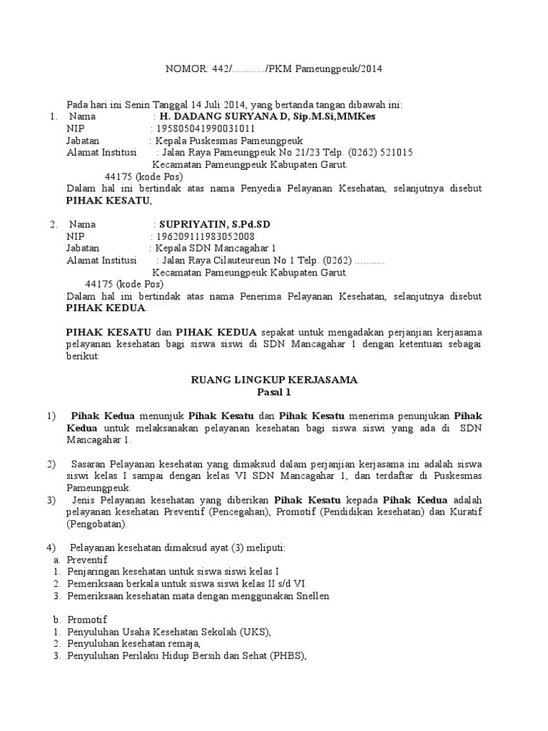 Selanjutnya disebut sebagai pihak pertama. Format dan contoh surat perjanjian kontrak kerja karyawan. 17 pt duk ix 201 4. contoh surat pengakhiran pemutusan kerjasama 2014 3 mei 1 april 2 kamis 18 mei 2017 contoh surat pengakhiran pemutusan kerjasama nama instansi jl. Jangan sekali kali kamu membuat perjanjian kerjasama dengan minim pengetahuan terhadap mou tersebut karena itu bisa menjadi masalah kedepannya. surat perjanjian pengadaan catering surat perjanjian pengadaan. Modul penulisan sk via www.slideshare.net. surat permohonan kerjasama format dan contoh surat kerjasama kegiatan produk surat permohonan kerjasama merupakan sebuah surat resmi yang dibuat untuk menawarkan sebuah permintaan atau permohonan kerjasama kepada seseorang atau perusahaan agar mereka mau menerima tawaran yang kita berikan. 15 contoh surat permohonan kerjasama di berbagai bidang sebagai suatu perusahaan yang ingin maju dan berkembang maka tentu harus menjalin kerjasama dengan perusahaan lain maupun berbagai pihak lain.contoh surat permohonan kerjasama. dengan contoh surat perjanjian ini semoga sobatku dapat. contoh surat penawaran jasa katering. Dalam sebuah kesepakatan baik itu dilakukan antar perorangan atau perusahaan adanya perjanjian dalam bentuk tertulis adalah hal yang utama. 50.000.000,00 (lima puluh juta rupiah) kepada pihak pertama untuk usaha peternakan dan pembiakan ikan lele.